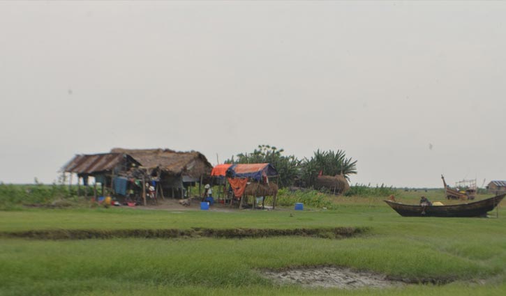 মোহনার জল ছুঁয়ে ট্রলার ভিড়লো দ্বীপচর শামছুদ্দিনে। পূর্ব উপকূলের জেলা লক্ষ্মীপুরের দ্বীপ রমণীমোহনের কমলনগরের চর-কালকিনির অংশ এই চর। এখানে বাস করে ২৫টি পরিবার। চরের মাঝ দিয়ে বয়ে চলা খালের পাড়